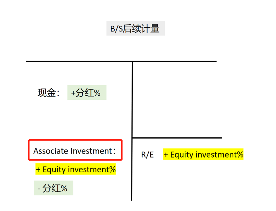 B/S表的单独科目,只在B/S表上记录一行 associate investment科目即可