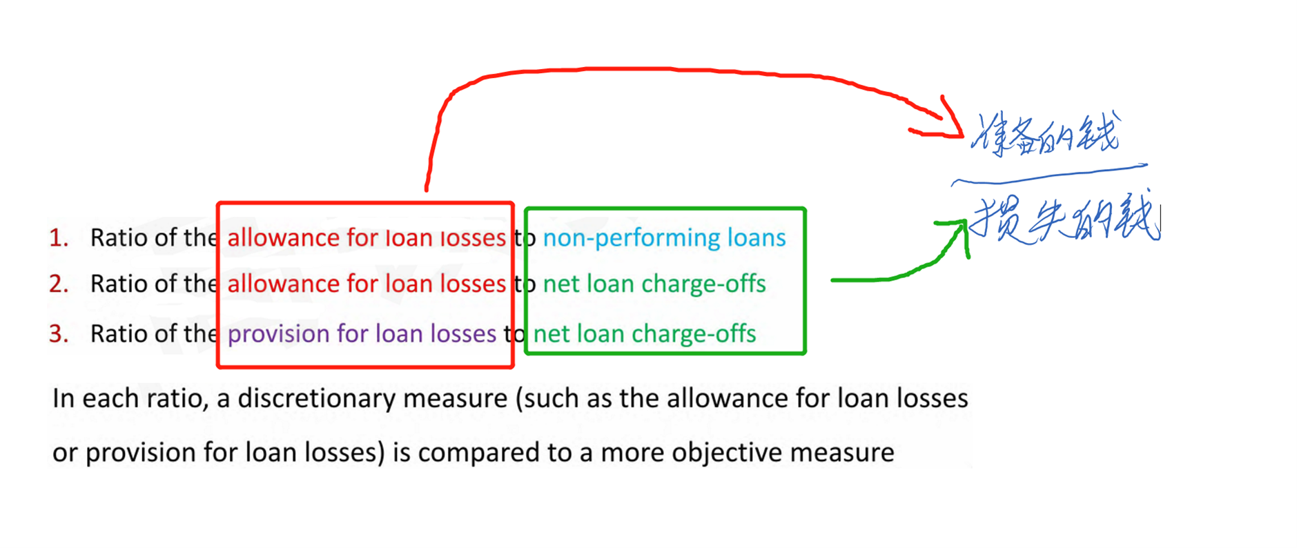 如图的三个比率都是(准备填补损失的钱/损失的钱),如果比率越高,则代表能填补损失的钱越充裕,银行面对损失的准备就越充裕