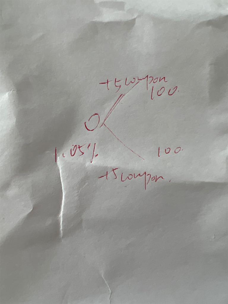 你好,这是你举的例子呀,但是这道题目是要我们根据exhibit1和2来看的呀,二叉树的本质是从远期利率来的,exhibit1中给出了远期利率,这里没有假设利率会波动的情况,所以就只用远期利率即可,101.55从3年折2年,101.55/1.012515是大于100的,所以只能取100,第二年折回第一年,第一年折回0时刻同理,所以callable只能取到100。
