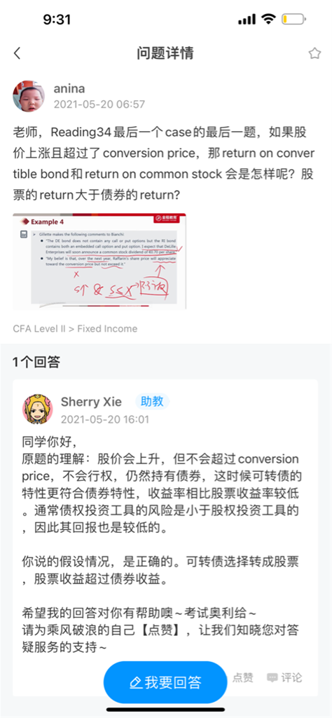 这种题是 无论conversion price 大于或小于stock price 应该 convertible bond return都小啊 因为进可攻退可守 risk 小所以retrun就小吧?还是说分情况讨论?