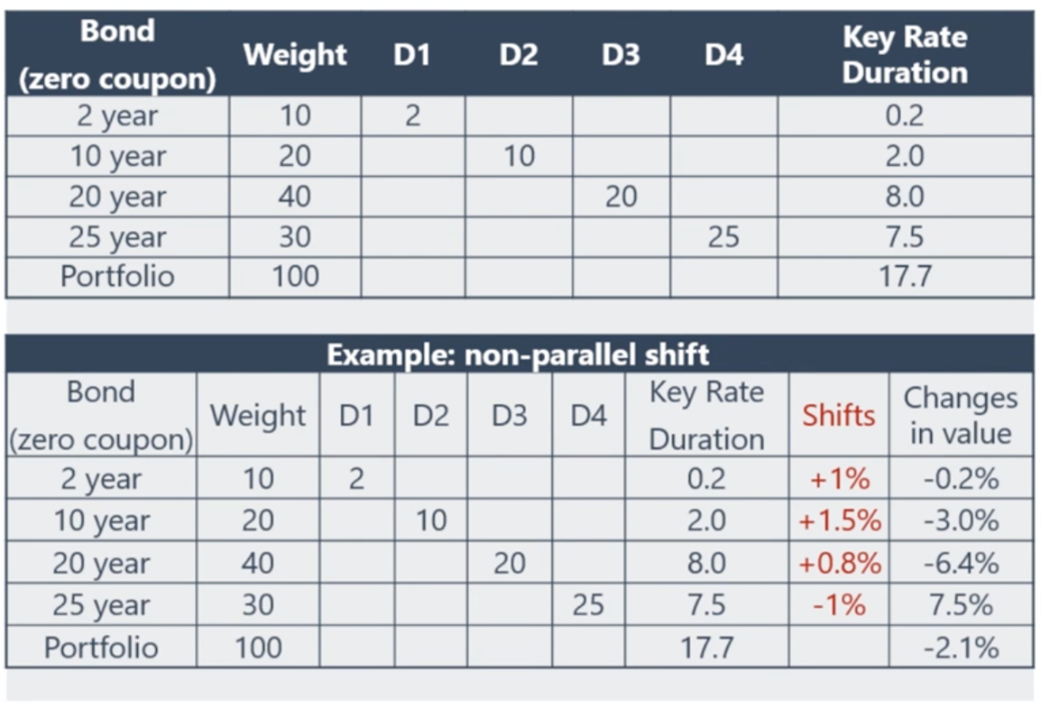 老师,讲key rate duration这里,老师说平行移动,组合的duration等于各个的KRD之和(粉色划线处)。那非平行移动也是这样吗?