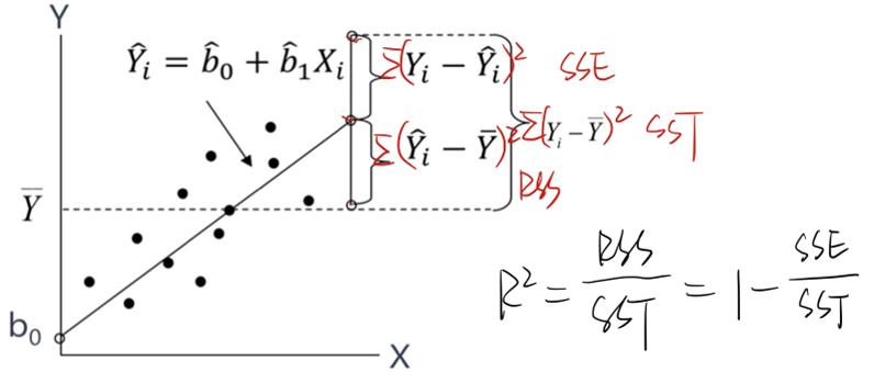 你好,变异系数和夏普比率本质都是在衡量单位风险,和SEE以及R^2还是不太一样,建议理解的时候不要将他们直接挂钩。其实SEE和R^2都很好理解的。SEE的本质是残差的标准差,也就是利用回归方程得到的Y预测值,和Y真实值之间的误差e全部平方再加总,除以自由度,再开根号,公式如图1(最下,上面的图片方便理解)。R^2是判定系数,衡量的是自变量对因变量的解释力度,即衡量回归直线能够解释的部分占总数的百分比,公式如图2。