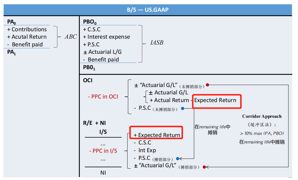 至于为什么会存在expect return,是为了I/S表的平稳性,降低NI因为养老金会骤然上升 或者 骤然下降...........这一点我在视频连接中讲到过,如果有时间可以观看
