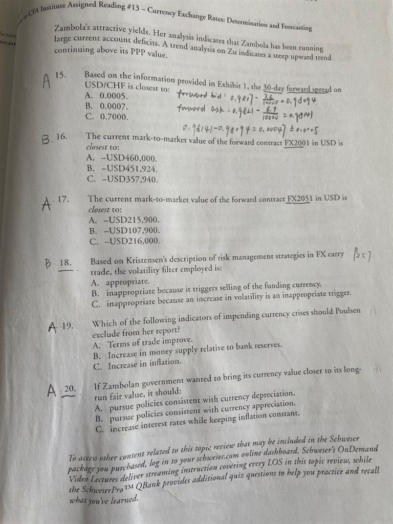 你好,1.标价形式为:0.9832 USD/CHF,1.2242 USD/EUR。2.因为卖出的不应该是funding currency,carry trade害怕的是investment currency大幅贬值,所以应该在波动率上升时卖出investment currency,B就不对了。汇率的波动率上升代表风险的增加,不确定性更强,这可能是危机发生前的警示,所以C是没问题的。3.改善贸易赤字应该让本币贬值,本币贬值,在外国看来他们购买本国的商品价格就低了,有利于本国出口,从而改善贸易赤字。