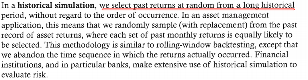 在两个Simuation的方法中,monte需要generator产生随机数据,但historical simulation不需要,historical simulation的数据直接从历史选取就行了