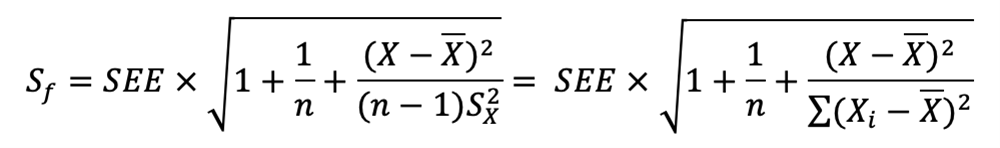 你好,sf是因变量预测值的标准误,考纲中不要求sf的计算,了解即可。但是它的性质有一点需要注意,就是当样本数量非常大的时候,sf约等于SEE(见下图),知道以上内容就够了,公式本身不需要背诵。