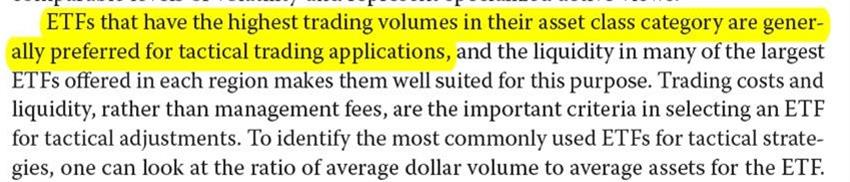 C选项是书中的原话,意思是在做tactical trading的时候,会选择交易量比较高的ETF,也就是流动性比较好的ETF.