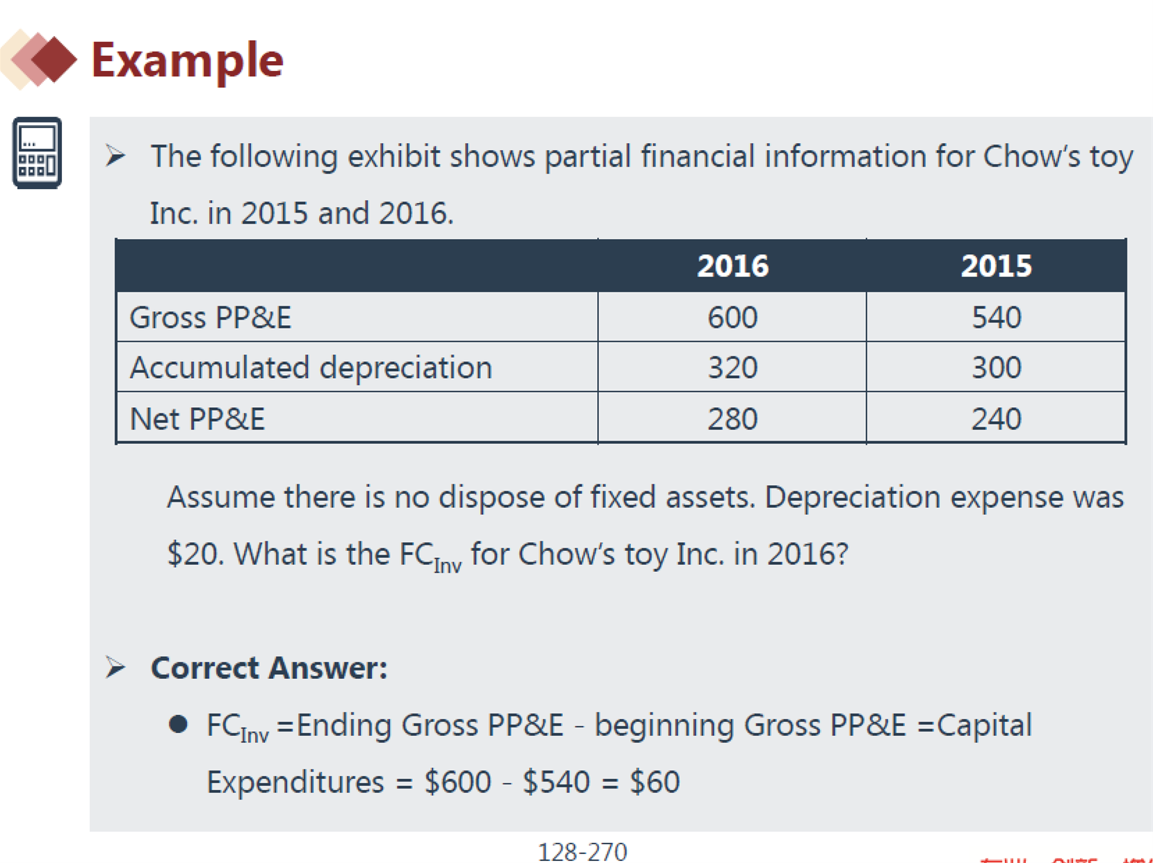 FCinv=BVend-BVbegin+Dep-Gain/loss 接下来的例题为什么没有加上20元折旧