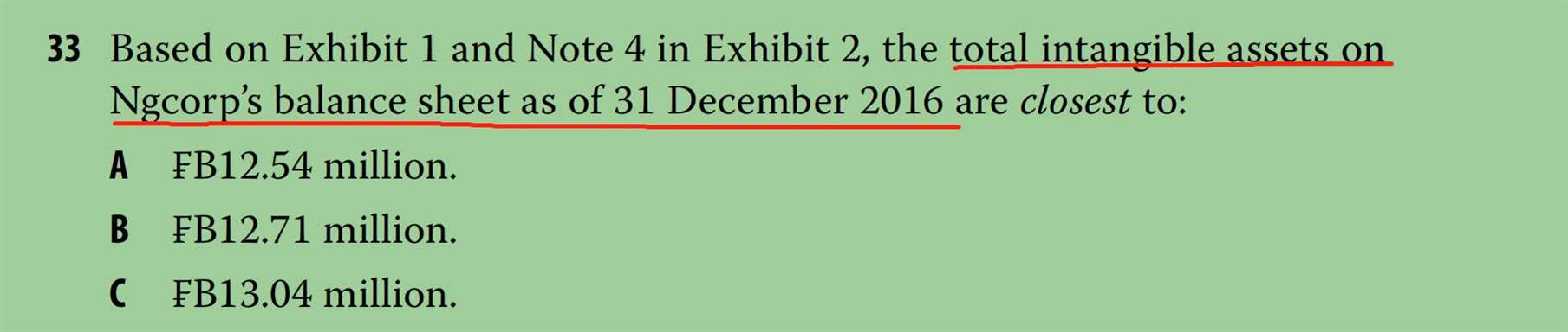 这里题目中说明the total intangible assets on Ngcorp’s balance sheet as of 31 December 2016 are closest to,那么在年末资产负债表上体现的无形资产的价值是需要考虑年末汇率的,因为这里使用Current rate method。