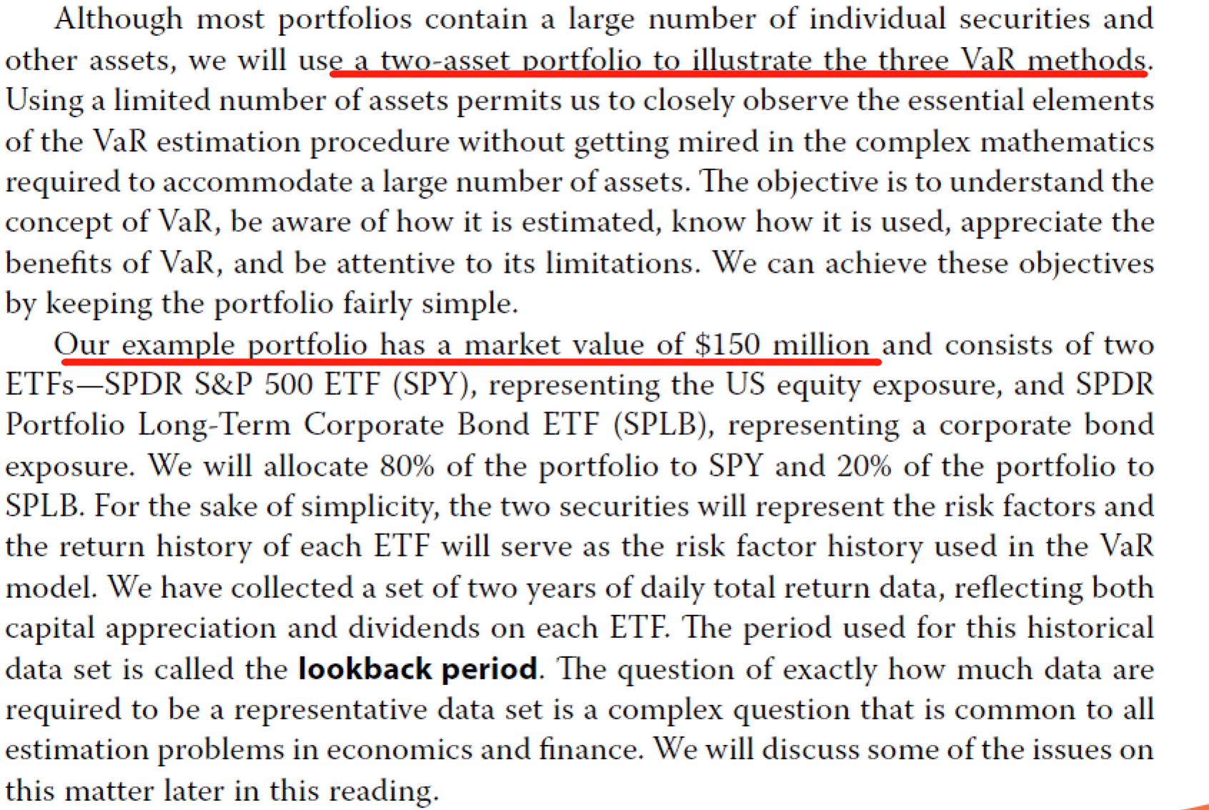在VaR这一节都是用的同一个案例,案例中的组合的价值为150M.