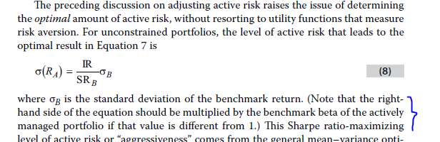 我好像看到我说的问题了,就比如图中的解释,如果构建的组合与基准有偏离,其实在式子里还是需要乘以beta做调整,相当于把原有的SR调整为新的SR,我的理解对吧?
