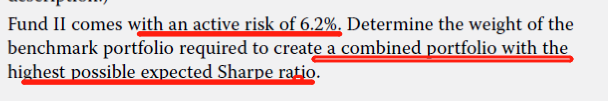 我觉得第二问没有后续,讲到底如何最优。比如通过调整S&P基准里个券的成分,已经是另外一个组合了(并非S&P),这时候基准的SR,已经不是S&P的SR,那么第二个基金按照以调整S&P成分的方式,获取最优SR将无止境了?