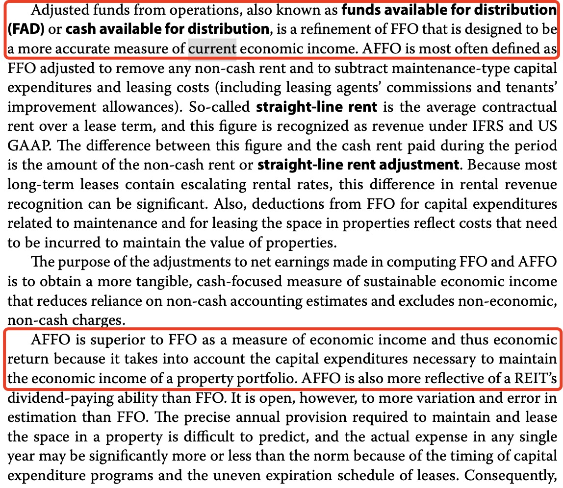 AFFO是对FFO的提炼,它更能反映当前的经济收入,因此C是正确选项。
