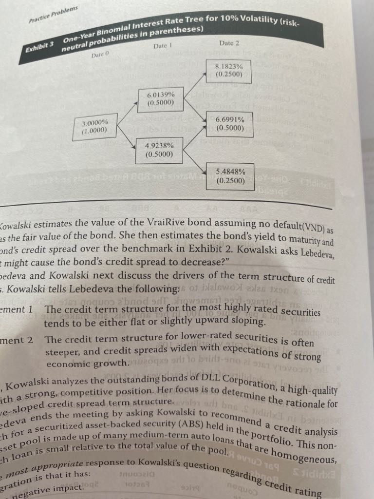 R31 1. 第6题 C选项 如何理解?2. 第8题 这个利率二叉树里的每个节点的利率如何算?3. 第14题 B和C ? 4. 第19题 C 如何理解?5. 第22题 C选项 statistics based approach 能讲讲么?(讲义里好像没看到这个)6. 第24题 为什么不乘98% or 99%? 7. 第25题 expected future value是什么?8. 第26题 risk- netural default probability ? 9. 第28题 为什么只算了一个级别变动?