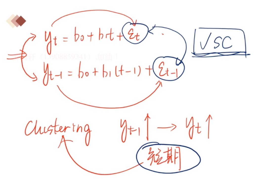像你说的今天第t天,股票上涨,明天继续上涨,带入t和t+1值进入方程中,预测的股价和真实的股价肯定会有差距,这个差距就体现在残差中。此时若回归出来的残差均是同方向的,即出现了残差的正相关。