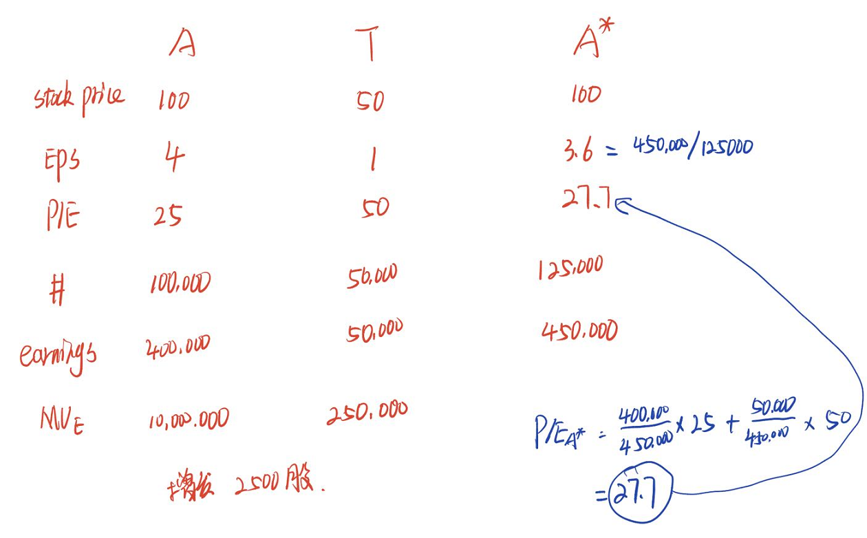 请看下图。P/E是上升的,而A公司的股价应该不变的。因此boostrapping是不被认可的。