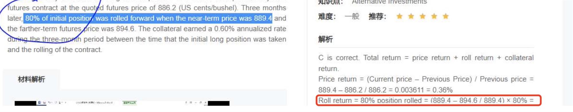 你好,你的理解是对的,意思是在转仓的时候,只有80%的头寸被rollover了,答案中在计算roll return的时候也乘以了80%。