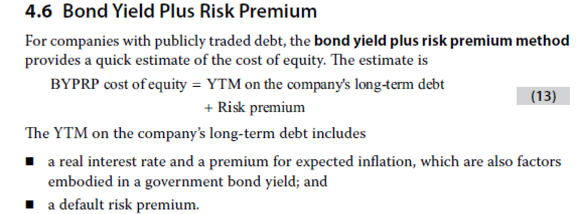 同学你好,因为这里要用BYPRP 这个特定的方法来计算。根据approach 3的描述,它说这个方法using an estimated risk premium of 6.5% that compensates for the additional risk of the equity issue compared with LED Light’s long-term debt。也就是说是在长期债YTM的基础上在加上额外的6.5%的equity的风险溢价。因此符合BYPRP YTM+risk premium的形式。