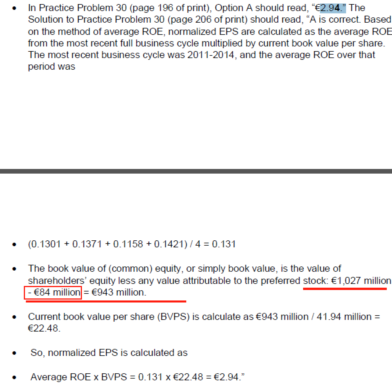 P136-137,R25 EXAMPLE 19在计算的时候也是用优先股的BV来计算common equity的BV的。
