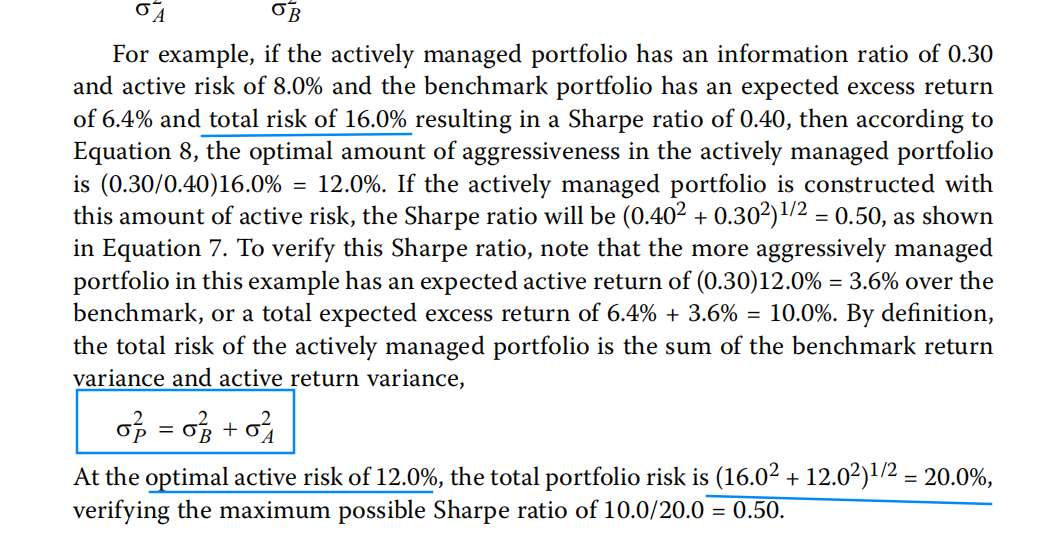 σp是combined portfolio的标准差,不是fund的标准差,σA应该带入的不是fund实际的active risk,而是optimal active risk。