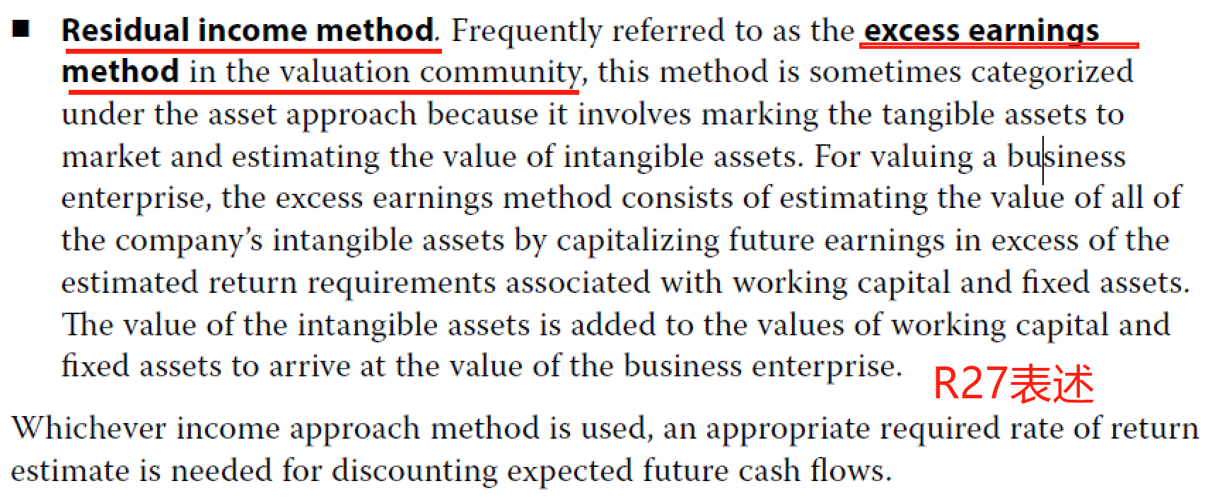 在R26原版书中说了,residual income model也被称为excess earnings method,和R27中的用词是一模一样的。
