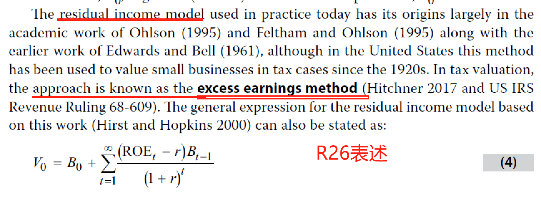 而在R26中,普遍使用residual income model,在对非上市公司的分析中,普遍使用excess earnings method。