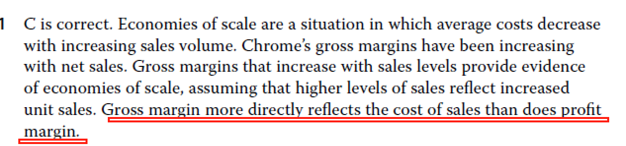 一般来说,体现规模经济的两个指标是gross margin和operating margin。而profit margin(net income/sales)因为还扣除了一些非营运相关的成本,因此不是一个直接反映规模经济的指标。