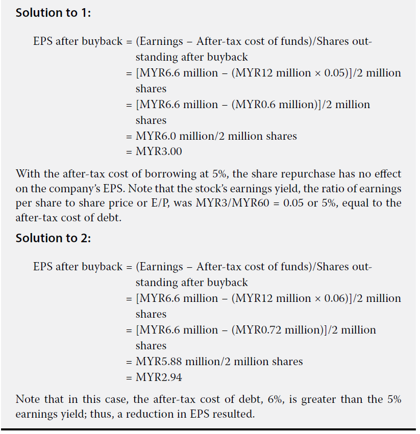 Earnings yield = EPS/P,是一个回报率的概念,虽然回购后的股票不参与EPS的计算,但其他的股票还是可以算出EPS,并和当前股价相比,来判断earnings yield是多少。