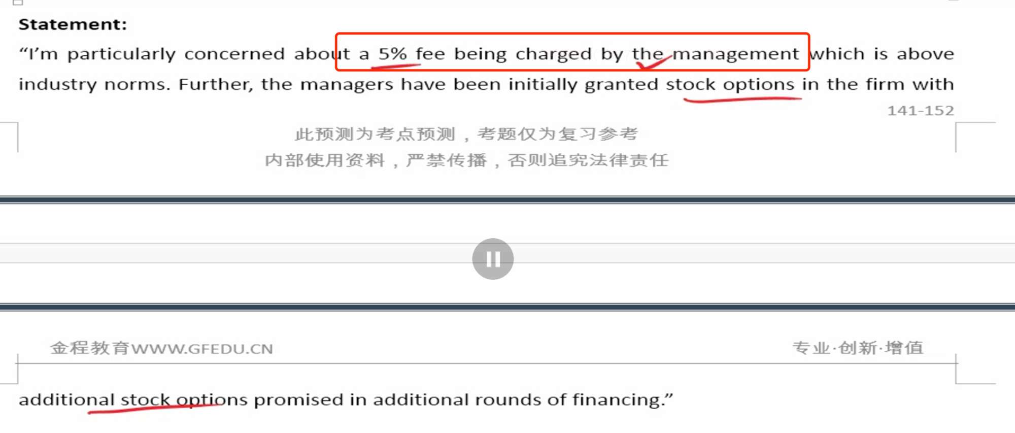 那么这道题我就不太能够理解了。这道题里的这句statement是一个PE公司的CIO说的,这个PE公司题目里明确说了是GP。那么这句statement表达的意思是担心这家PE投资的公司的管理层会收一个高于行业平均的管理费。这笔管理费在这道题的语境中应该是被投资公司的管理层收取的,而不是作为GP的PE收取的,那么这怎么会是Alternatives这门课里讲的managementfee呢?