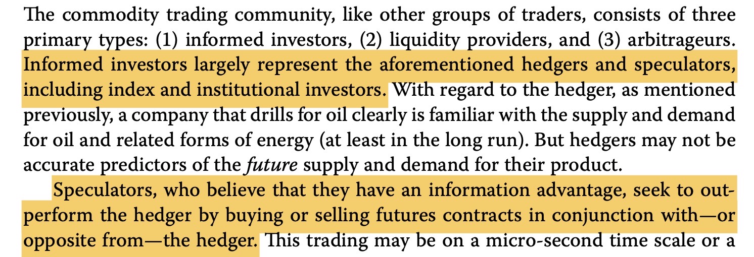 你好,见下图。根据原版书的说法,其实informed investor是个范围更大的概念,包含对冲者和投机者,也包括指数和机构投资者。利用信息优势进行交易的都属于这个类别。