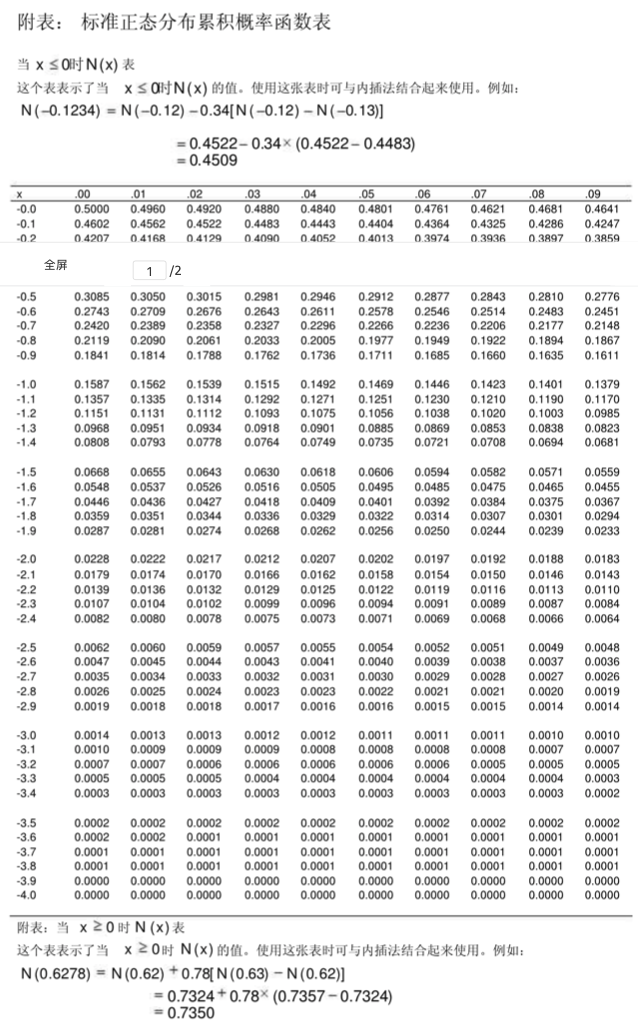 老师能不能提供:累计正态分布表,需要查N(d1)和N(d2)