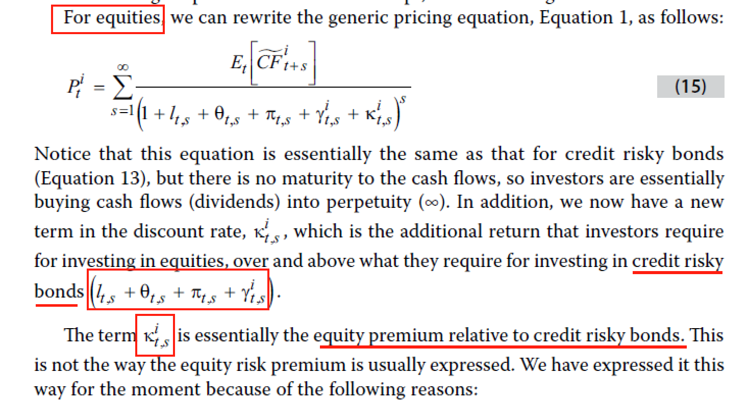书里也说了,这个κ不是常规的ERP的表达形式,一般ERP就是equity market return减去risk free rate,而这个κ相当于是equity risk premium超过credit bond risk premium的部分,这么表达就是为了体现ERP比credit risk premium高,即多出来κ这一部分。