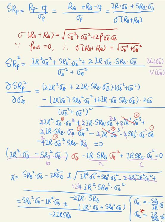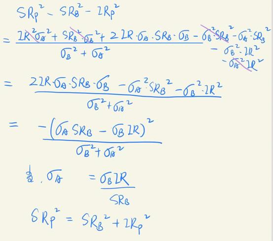 具体的推导见下图。先求出SR最大时σA*的值,然后可以证明当SR最大时,SR^2=SR_B^2+IR_P^2成立。