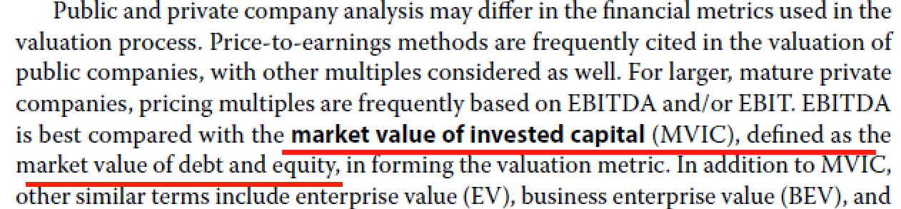 怎么理解MVIC/EBITDAmultiple?分子Market-Value-Of-Invested-Capital说的是股东的投入,不包括creditor的部分吧?