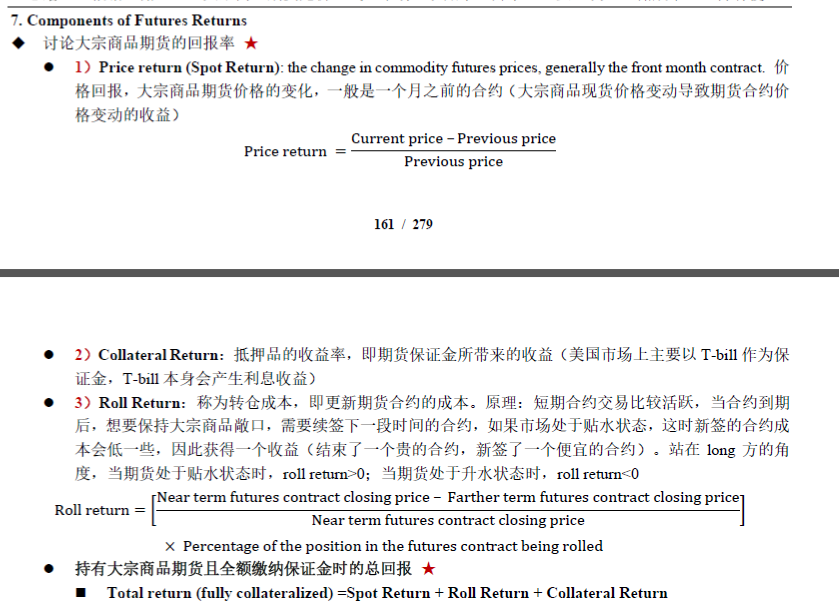 同学你好,一般我们算大宗商品的futures return的时候都是不考虑杠杆的,但实际上futures就是由杠杆的,而期初需要存入一定的collateral。而collateral也是可以投资无风险资产,获得收益的。