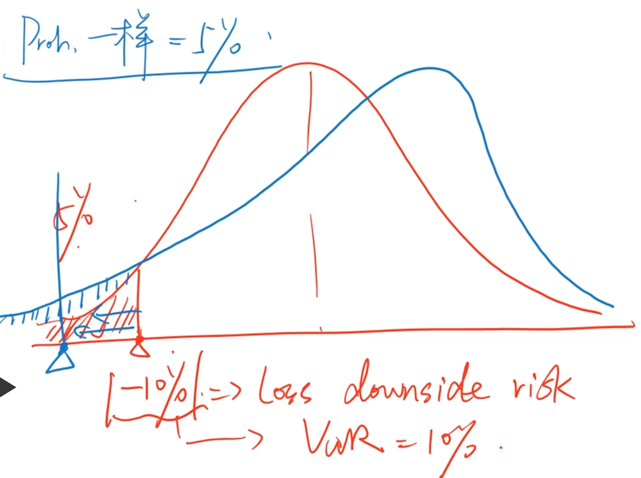 见下图老师板书,蓝色是负偏分布,红色的是正态分布,蓝色的左边尾部风险会更大。