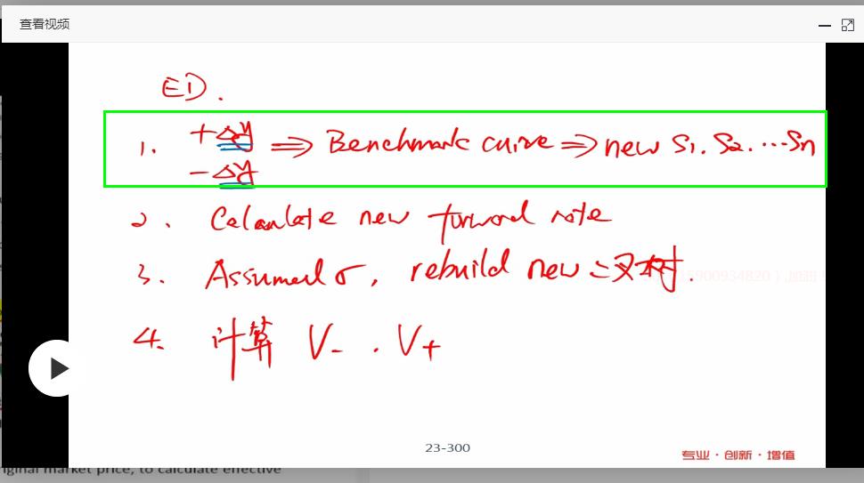 错在了直接加在已有的二叉树上。正确的是要加在benchmark curve上,得到新的spot rates,然后计算新的forward rates,重新构建一个新的二叉树。见下图