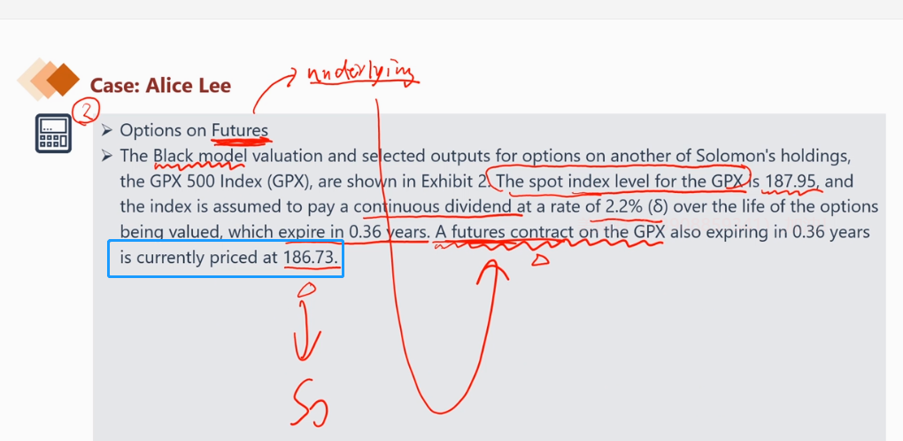 嗯嗯,你的理解是正确的。③问的是underlying(option的标的资产futures)在0时刻的价值,是题目中蓝色框“is currently priced at 186.73”