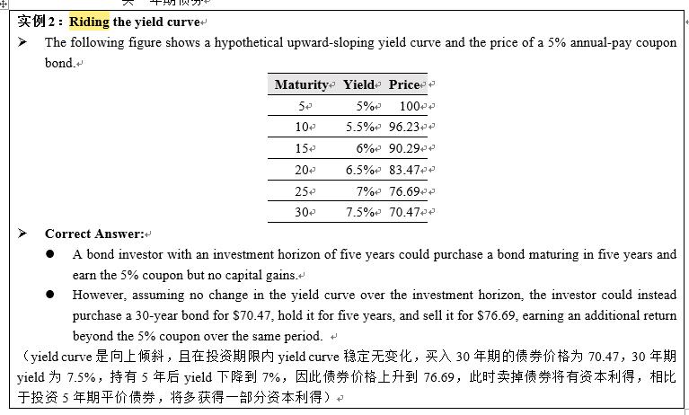 Riding the yield curve的概念是把给定的yield在计算中假设当做YTM进行折现,相关内容在冲刺笔记里面有详细的例子,见下图。