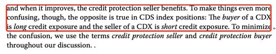 这道题目是来自于原版书的,它在回答这个问题的时候,默认了sell CDX=long credit exposure,和它对于该名词的定义完全不同(是真的挺让人迷惑的...)
