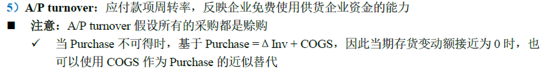 老师好,官网上有个公式days payable outstanding =account payable/(COGS/365),以前学的分母不是purchase吗?麻烦老师讲解一下,谢谢