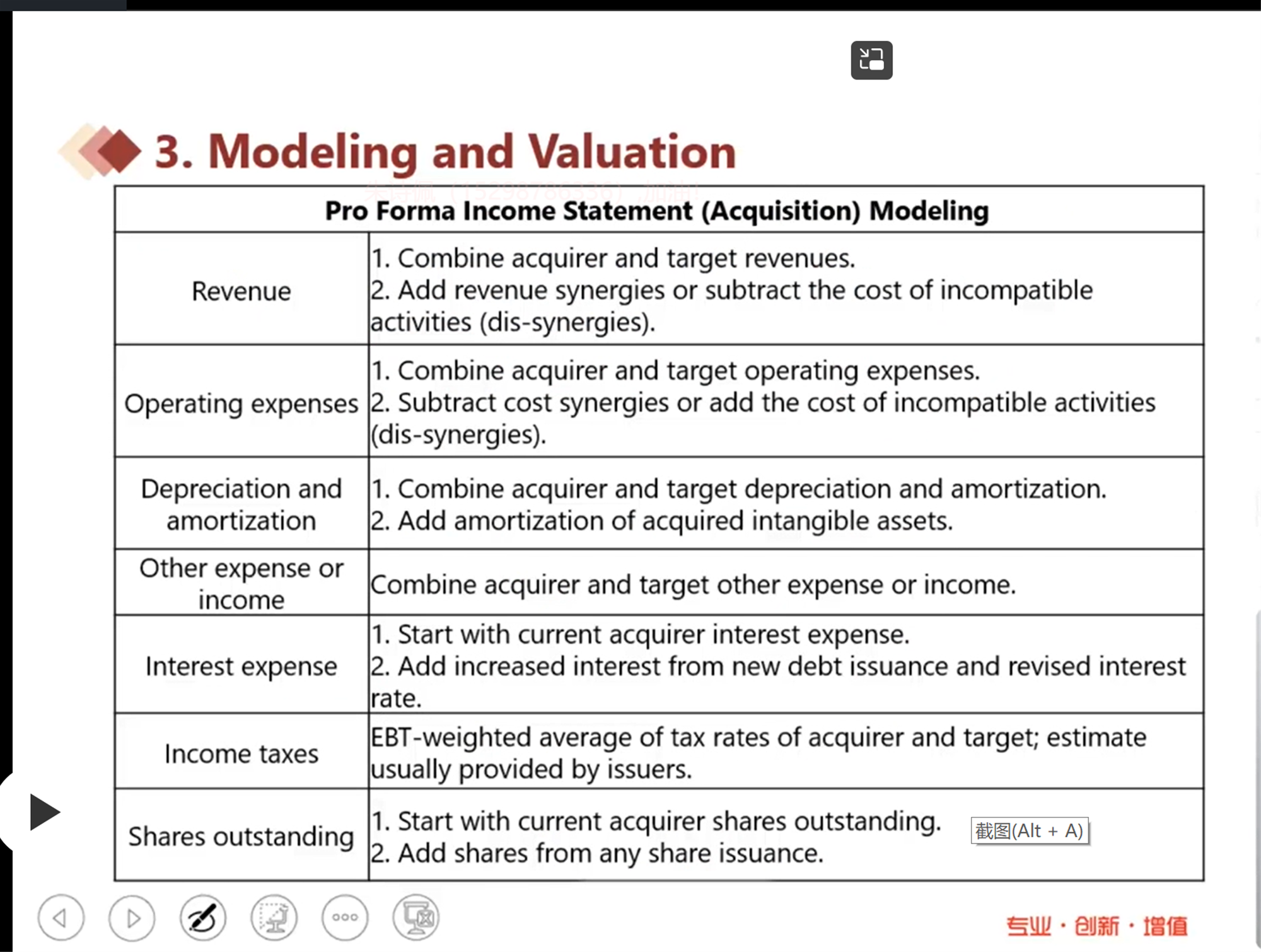 合并财务报表的时候就是要把收购前各家公司的数据和预测的synergy结合到一起做模拟的财务估值。