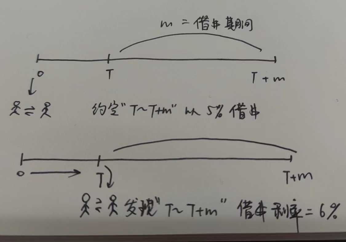 如果想知道1%节省的钱在T时刻的现值,需要将1%折现到T时刻,折现天数为“m”