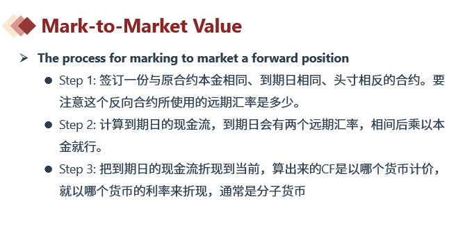如果要求盯市价值的话就需要签订一个反向合约进行平仓,以此来计算t时刻原合约的价值。原来是short NZD forward,那么签订反向合约就是在t时间点去long NZD forward来对原合约进行平仓。