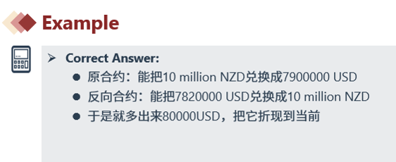 老师这里没理解,题目是short了10m新西兰元,但是第二张图计算到期价值的时候,为什么用括号里都是美元为单位,乘以的合同规模确实新西兰元?最后还得到80000美元?
