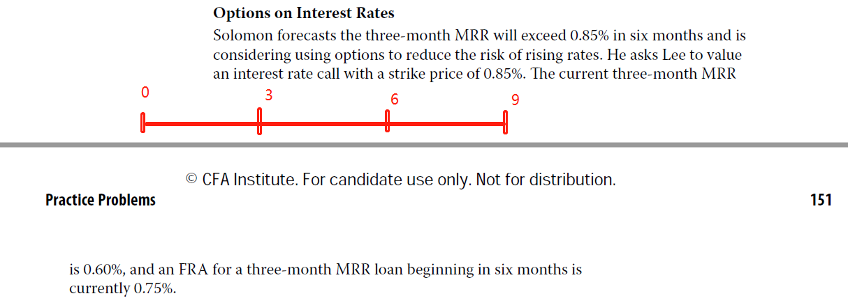 结合以下截图信息,它是这个小题需要用到的信息,Solomon预计6个月之后,为期3个月的Libor(或者MRR)会涨过0.85%