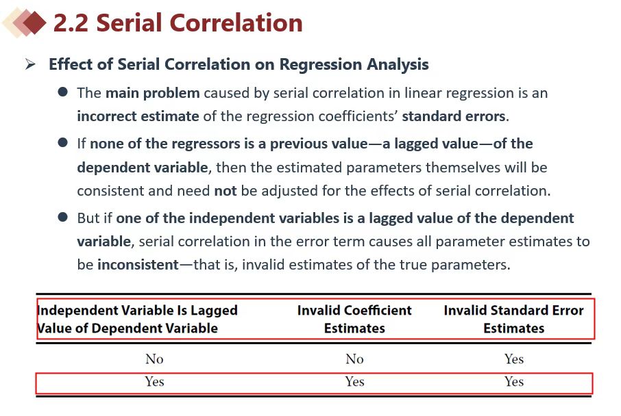 你好,不是序列自相关违反一致性,只有当自变量是因变量的滞后项时,出现序列自相关,回归系数的一致性才会被打破,讲义见下图。