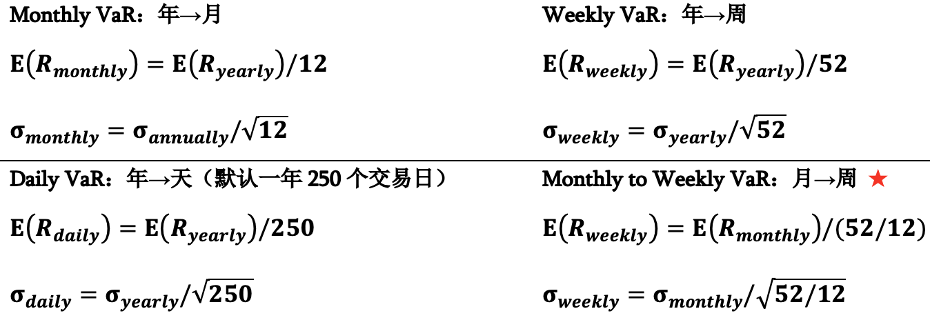 依此类推,250天的方差是一天方差的250倍,250天标准差是1天标准差的√250倍,这个当做基本性质记住即可,考试不会要求掌握具体推导。
