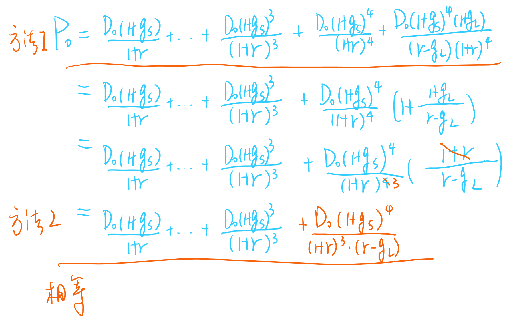如果是算TV,这两种分发是不同的。因为TV的值取决于第二阶段是从什么时候开始的。这是一个二阶段的FCFE模型