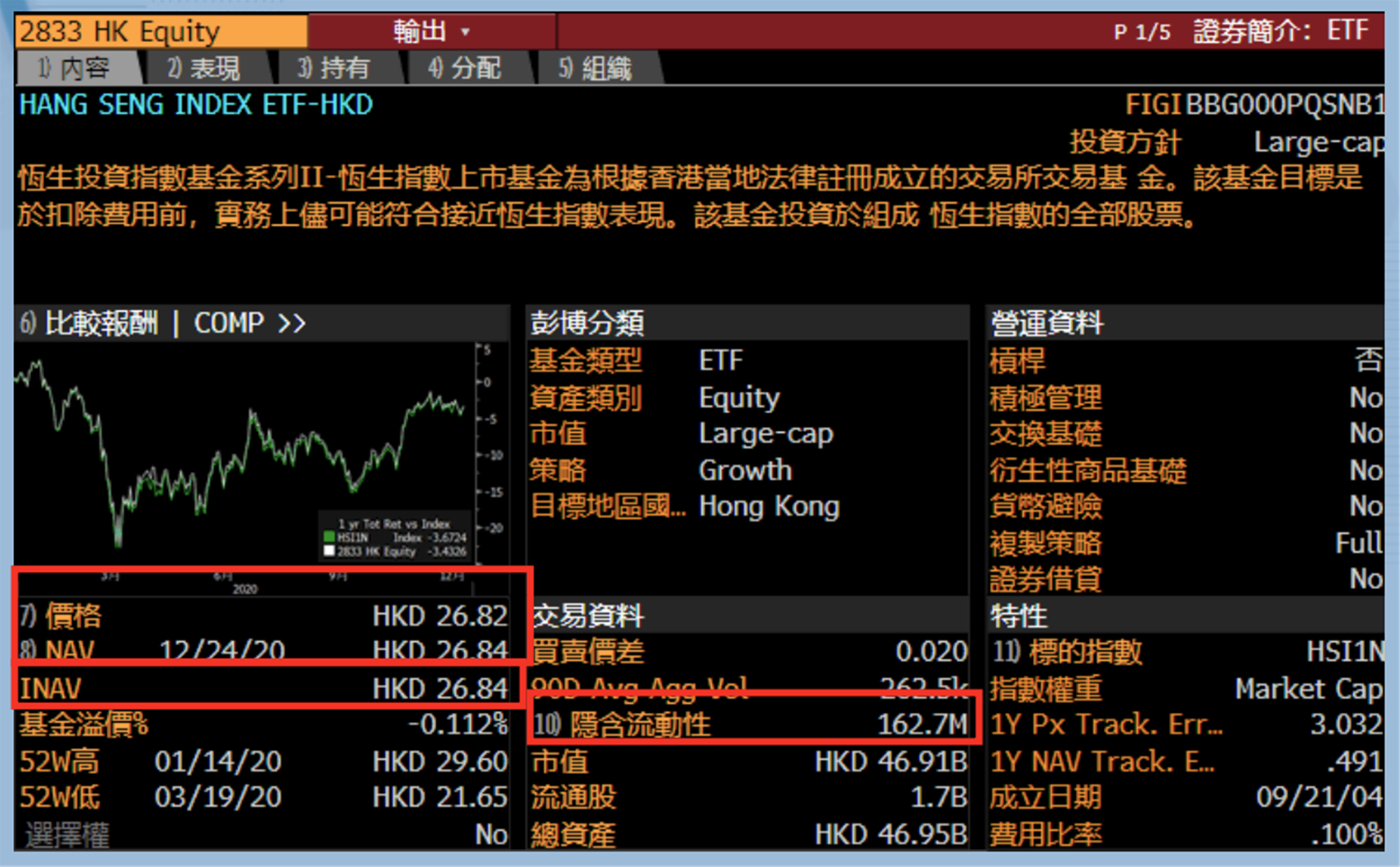 很多数据提供商会直接提供ETF的NAV,下面就是彭博的一个例子。